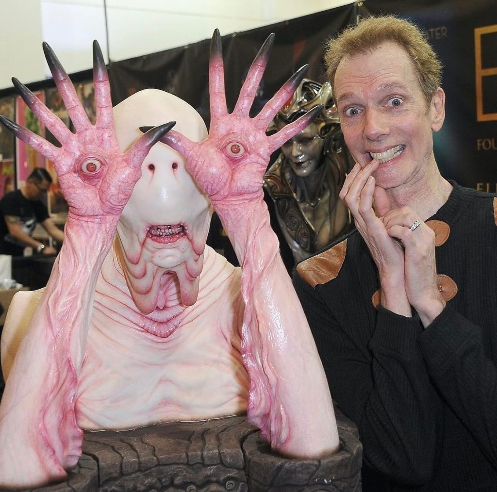 If you’ve seen Pan’s Labyrinth, you remember the Pale Man. You may forget where you put your keys, but you won’t forget that creature, even if you only saw it for a second. Doug Jones performed the Pale Man under heavy prosthetics, bringing slow, deliberate movement to something that already looked like a living warning sign. And just for fun, here’s another fun fact: Jones also played the Faun in the same film because Guillermo del Toro really loves to put this man in all sorts of dope costumes.
